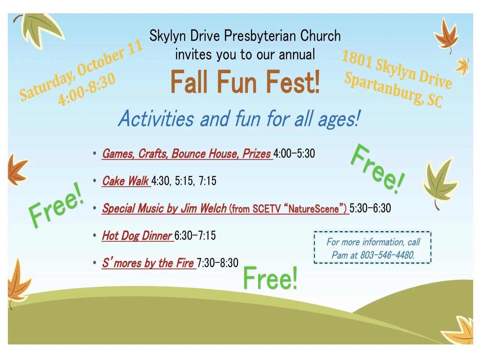 Skylyn Life! Join us for a community fellowship event! On Saturday, October 11, we are hosting a Fall Fun Day! Invite your family, friends, and neighbors for an afternoon of fellowship and fall activities!